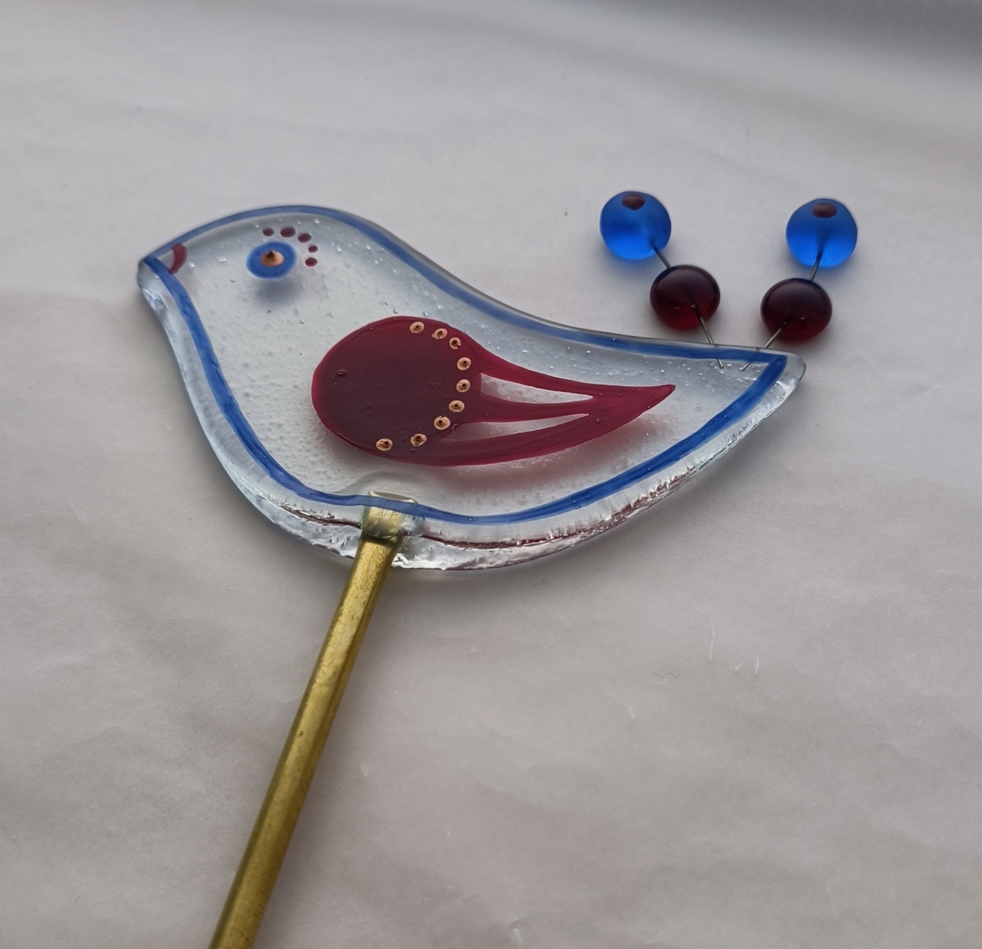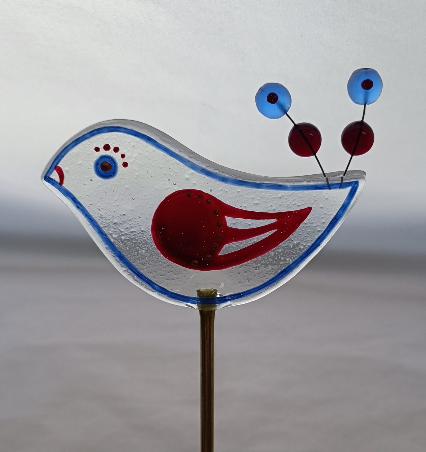 Krásná skleněná dekorace vyrobená technikou spékání skla a následně ručně malovaná vypalovacími sklářskými barvami.